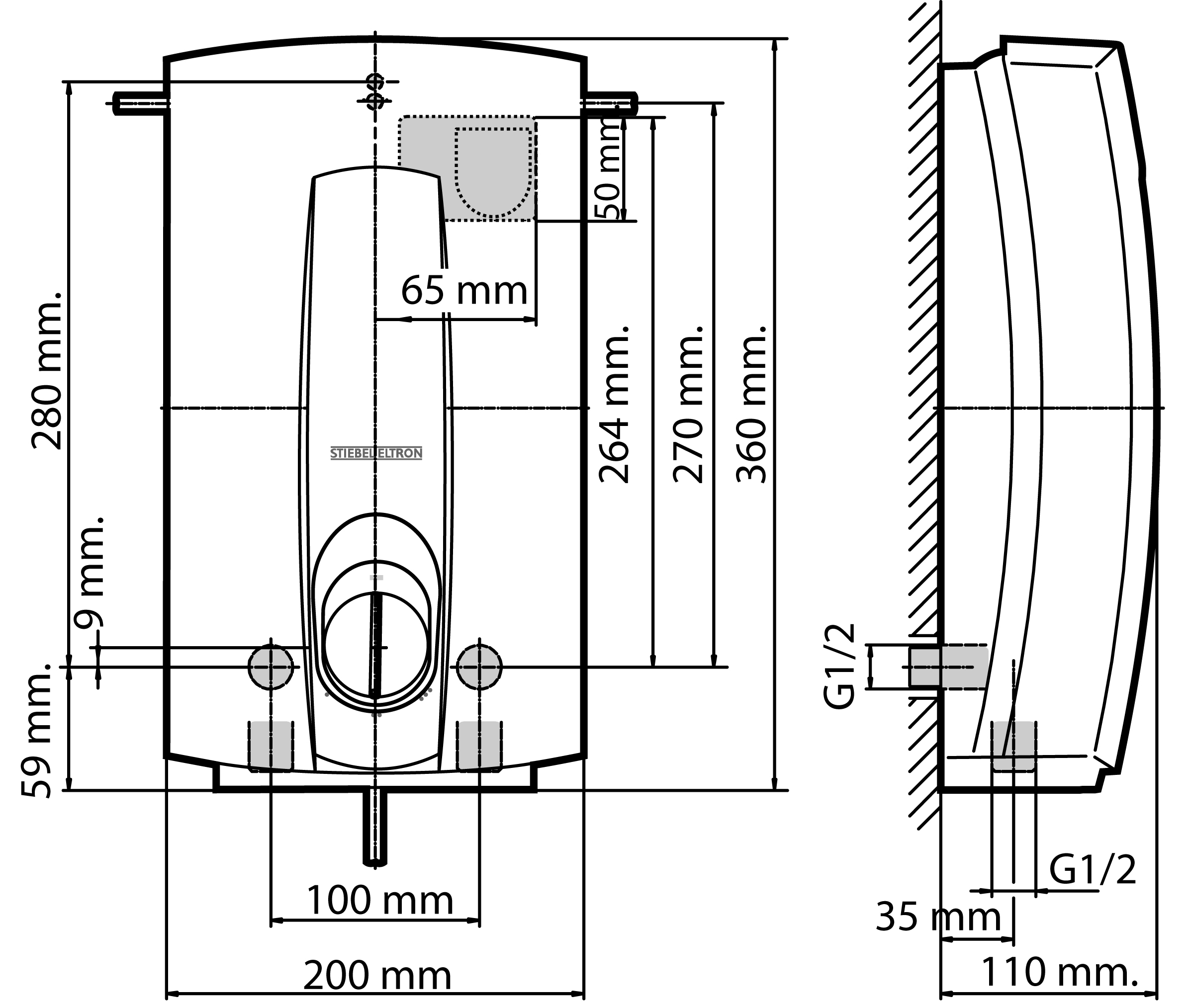 The DHCE 8/60 is designed to be installed as close as practical to the most used hot water outlet. Installing closer to the point of use can help to save water and energy by delivering hot water quickly to the outlet. The STIEBEL ELTRON single phase electric instantaneous water heaters are designed to service multiple outlets located several metres away from the system.