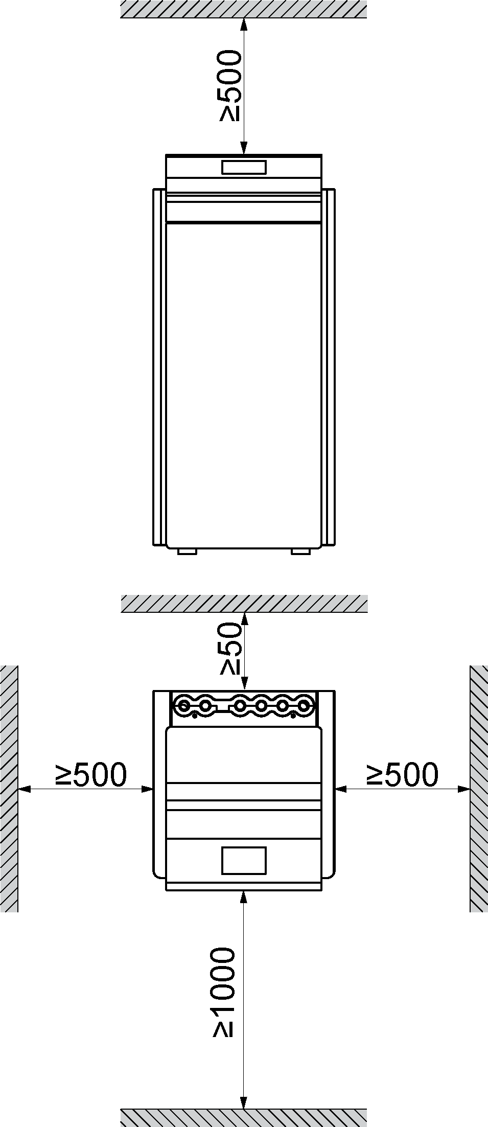 Internal pressure hoses enable a direct hydraulic connection to the heating and brine circuits. For easy installation, the hydraulic connections are equipped with quick connectors and are already thermally insulated. Transport is made easier by carrying handles on the rear wall.