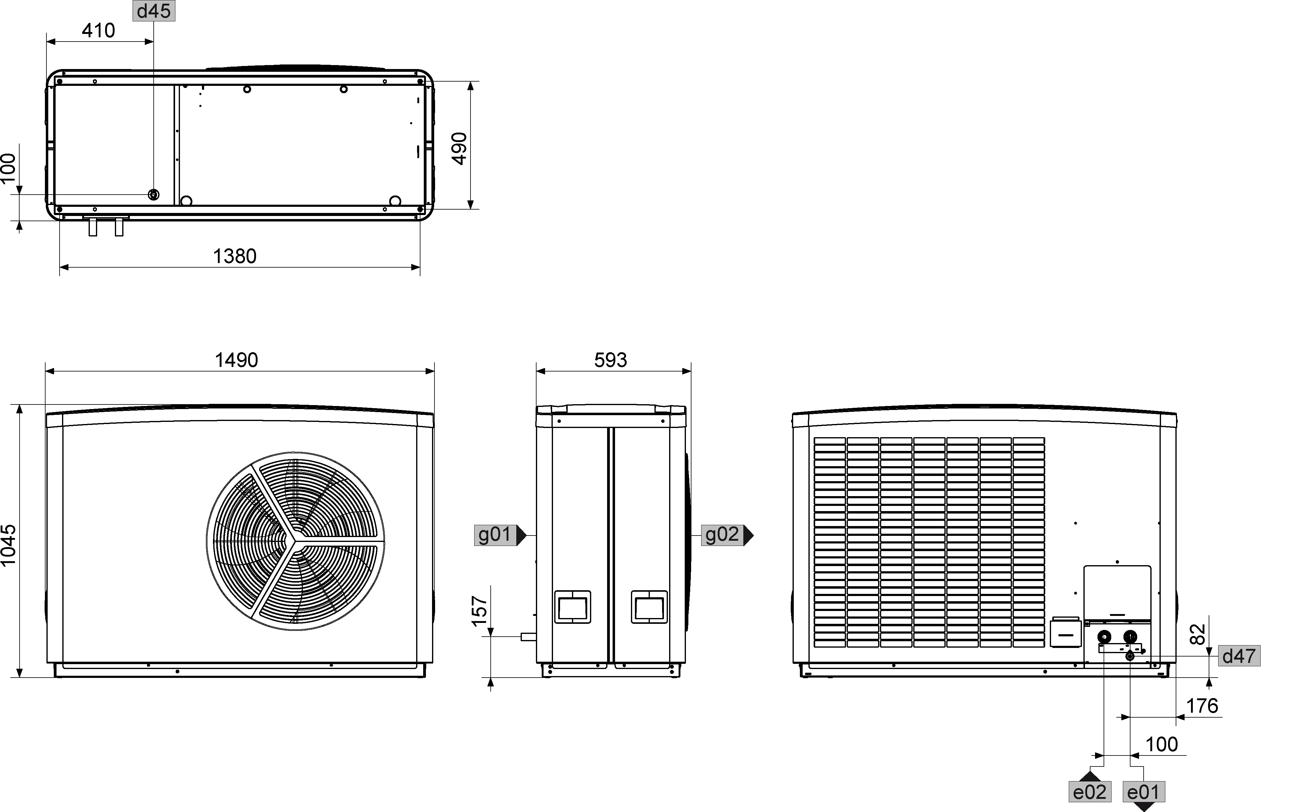 - Silent operation thanks to encapsulated refrigerant circuit and isolated compressor