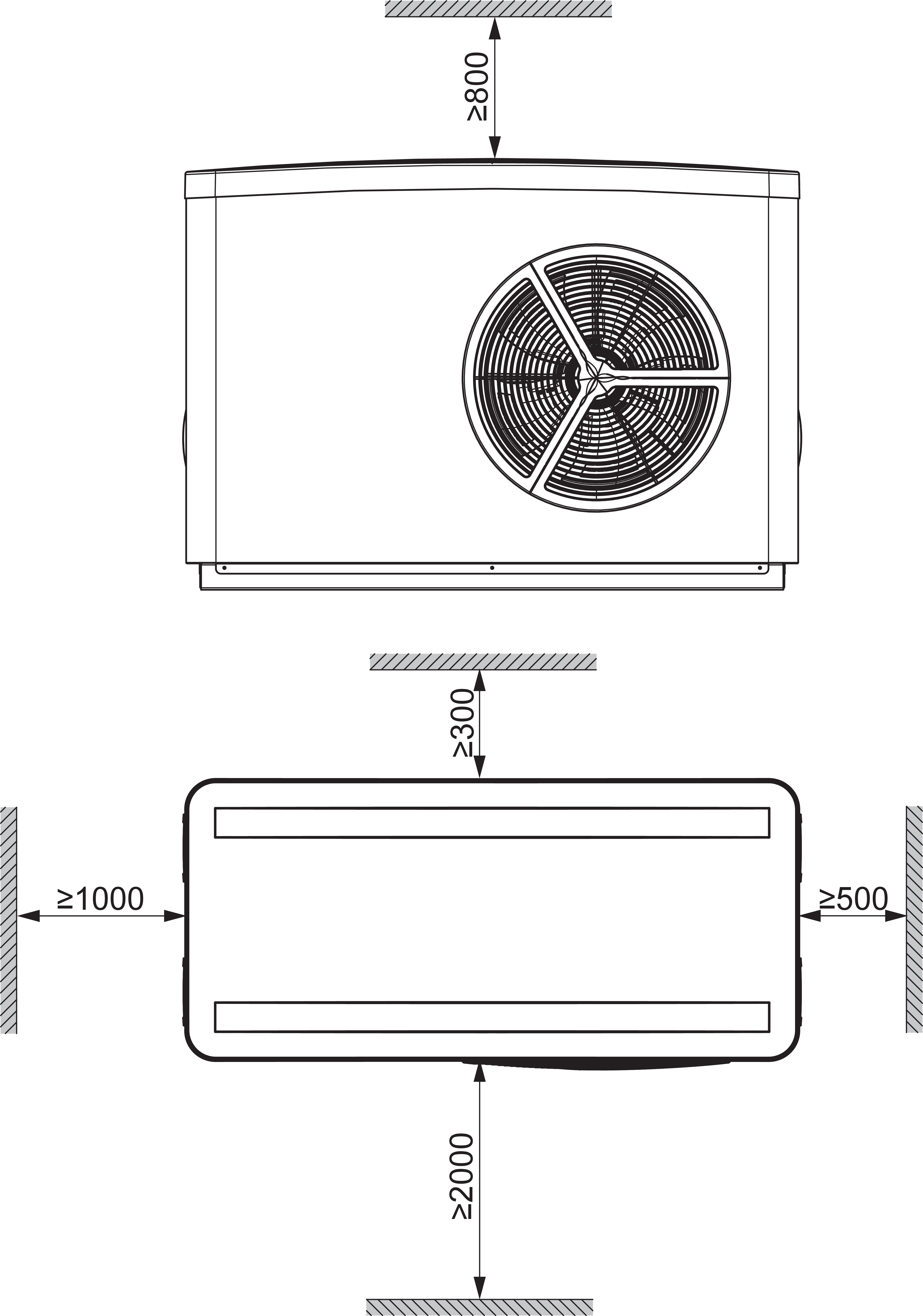 - Air source heat pump for heating, hot water and cooling